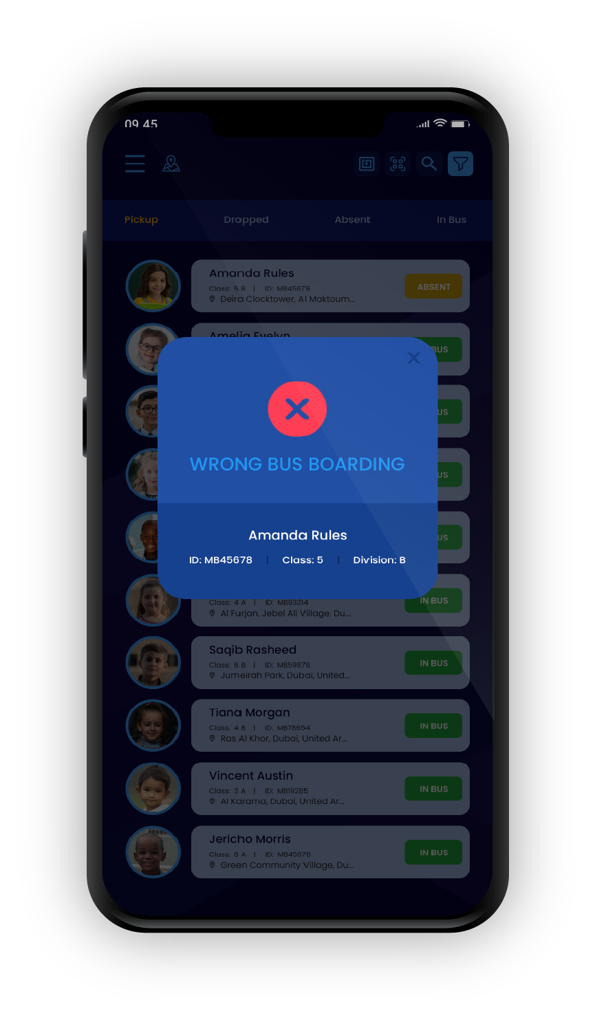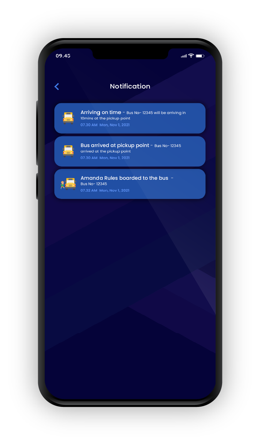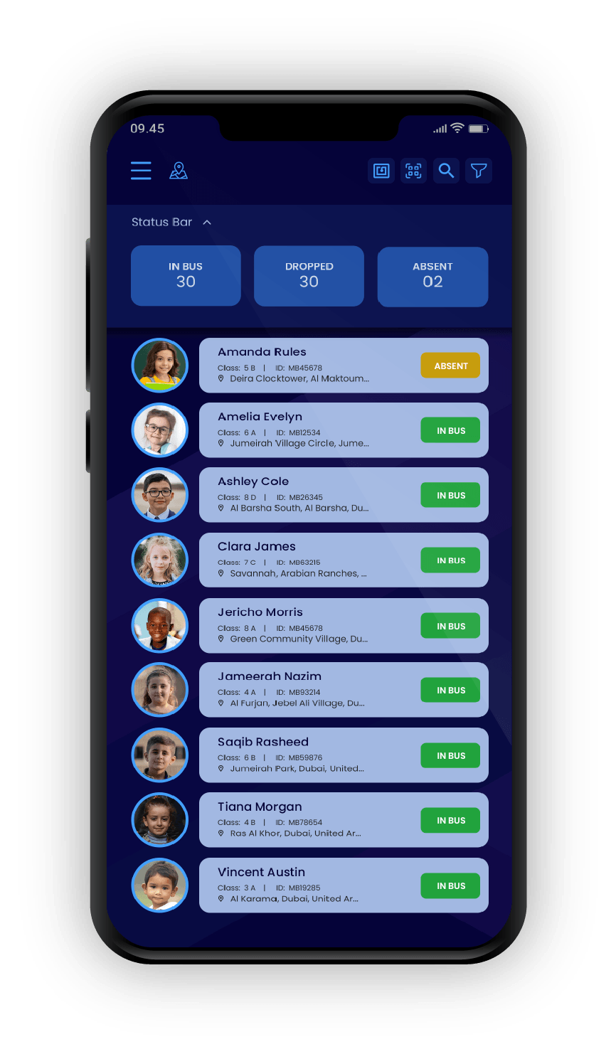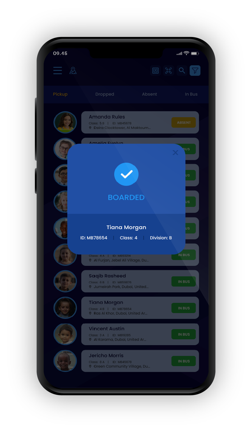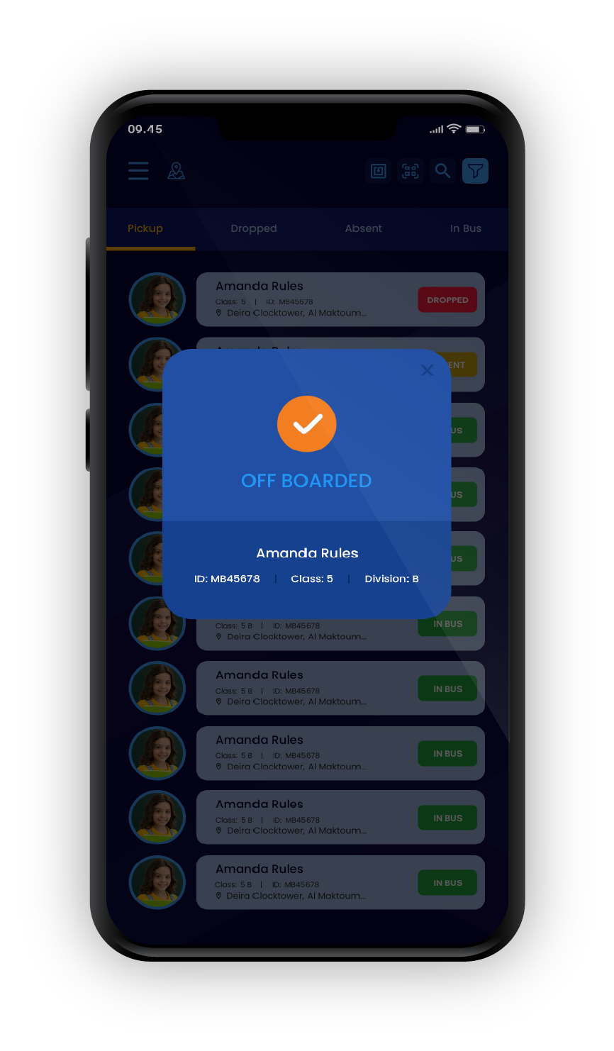 Driver application ensures that all students are picked up from a boarding point and also make sure they are off boarded at school and vice versa.